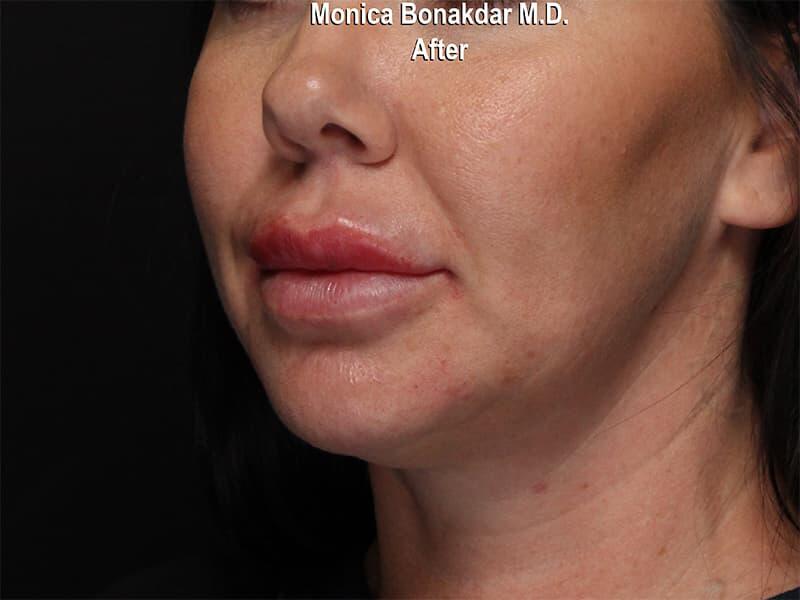 Dr. Bonakdar Explains: I try my best to deliver a top-of-the-line lip filler experience, where the patient’s safety and comfort is my first concern. All the fillers are thoughtfully decided based on my patient’s expectations and desired outcomes. This patient wanted plump full lips and she got exactly that. She was very happy with the results.